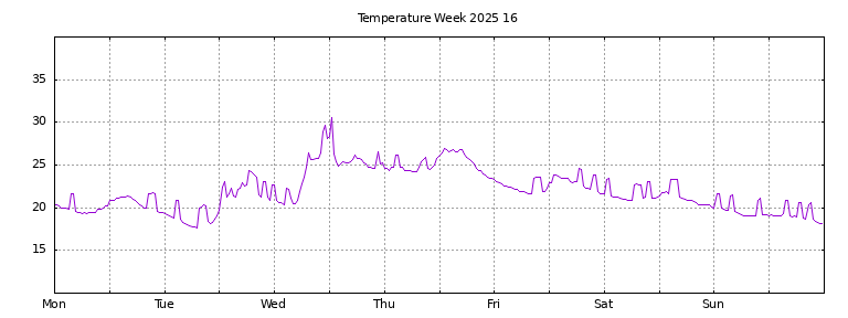 | Week [+] | Tmin °C | Tmax °C | Mean °C | σ | n |